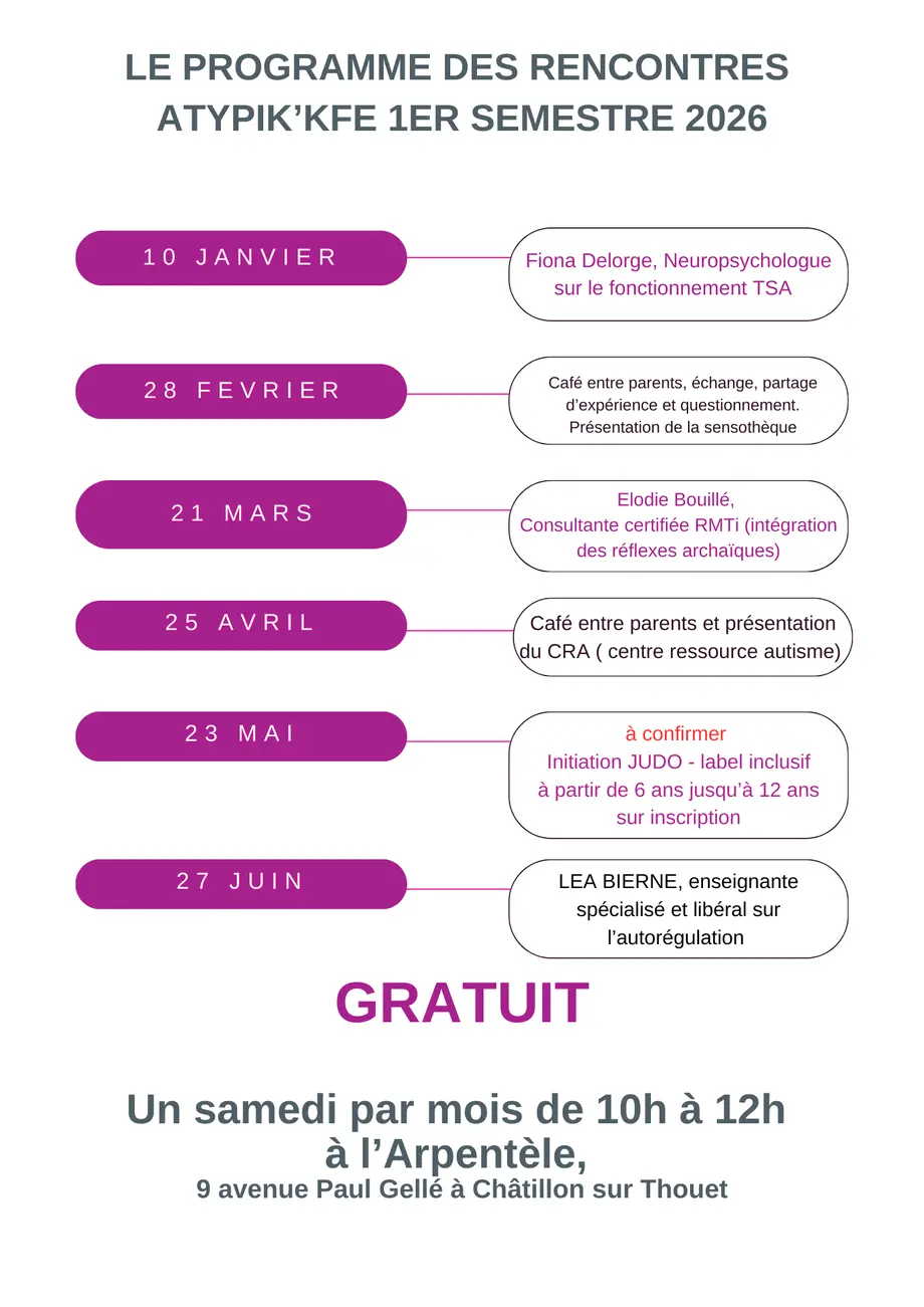 Le CSC l’Arpentèle propose, le 10 janvier, un Atypik’kfé, temps d’échange de 10 h à 12 h, dans le cadre de l’intervention de Fiona Delorge, neuropsychiatre.