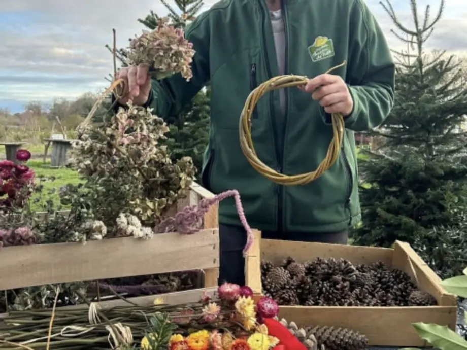 Confection de couronnes de Noël au naturel à Montardon (64)