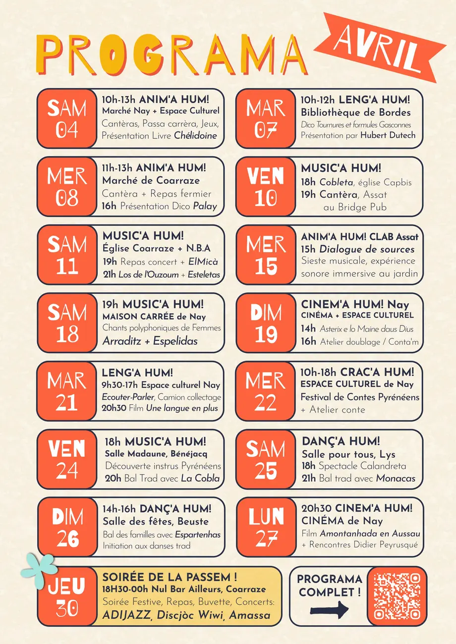 Cette première édition du MES BIARNÉS se déroulera pendant tout le mois d’avril, avec des actions variées :