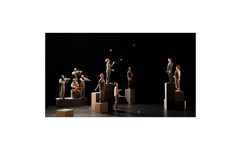 Confiant la musique de leur pièce au Quatuor Debussy, le Petit Travers compose une ode grand format à la pratique du jonglage. Un ballet aussi espiègle que lyrique aux effets chorégraphiques et visuels saisissants.