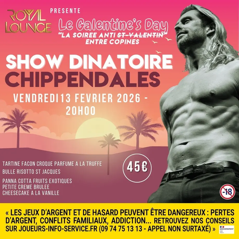 Pour marquer cette occasion, on vous propose une soirée dînatoire unique avec le show CHIPPENDALES sensationnel de la troupe Body Exciting, élue meilleure troupe de France depuis plus de 17 ans !