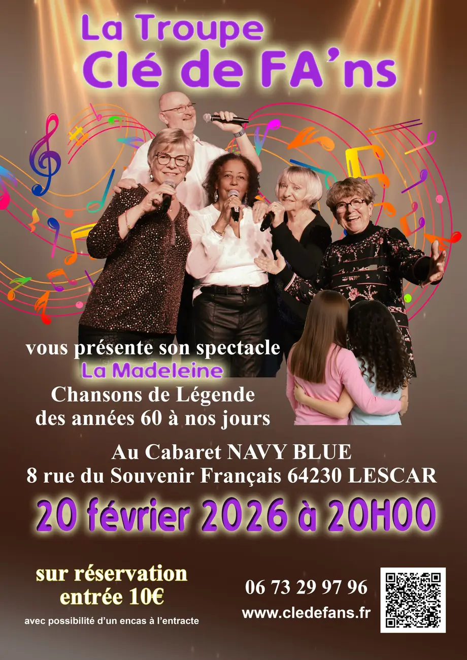 Ce 20 février 2026, la Troupe CLÉ de FA’ns présente son spectacle ouvert à tous "La Madeleine". Les Artistes sur scène offriront une rétrospective de la variété des années 60 à nos jours.