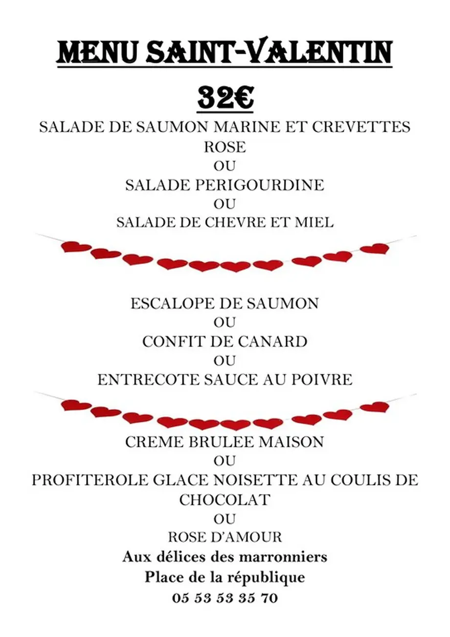 Menu spécial Saint-Valentin :