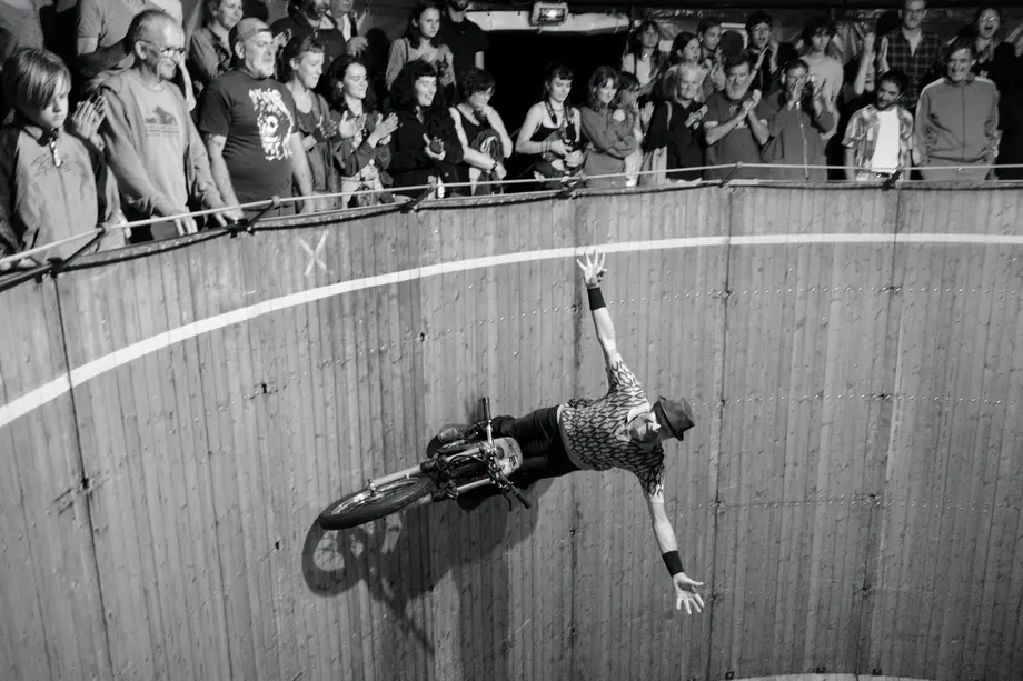 Mortel jus de Mortel réveille le mythique « Mur de la Mort », attraction foraine légendaire où motos et mobylettes défient la gravité sur une paroi verticale.