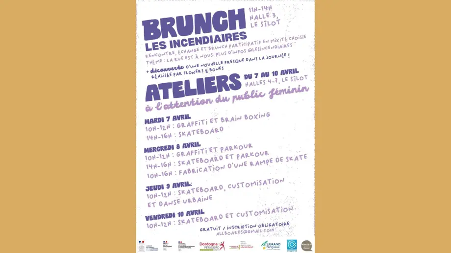 Ateliers graffiti ou parkourLe 08/04/2026Coulounieix-ChamiersAll Boards Family vous propose un atelier de graffiti pour exprimer votre talent, ainsi qu'un atelier de parkour pour repousser vos limites.