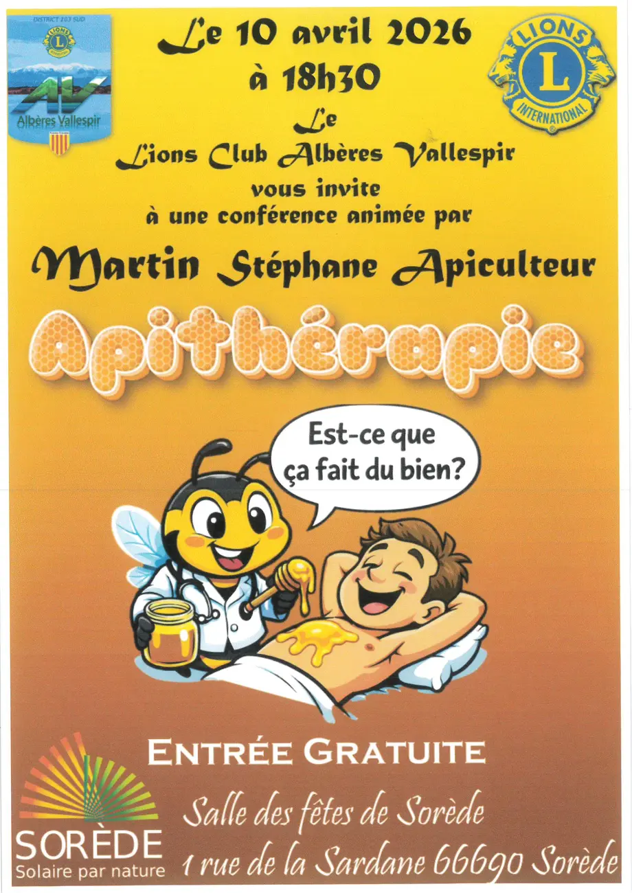 Le Lions Club Albères Vallespir vous propose une conférence captivante sur l’apithérapie, animée par Martin STEPHANE, apiculteur passionné.