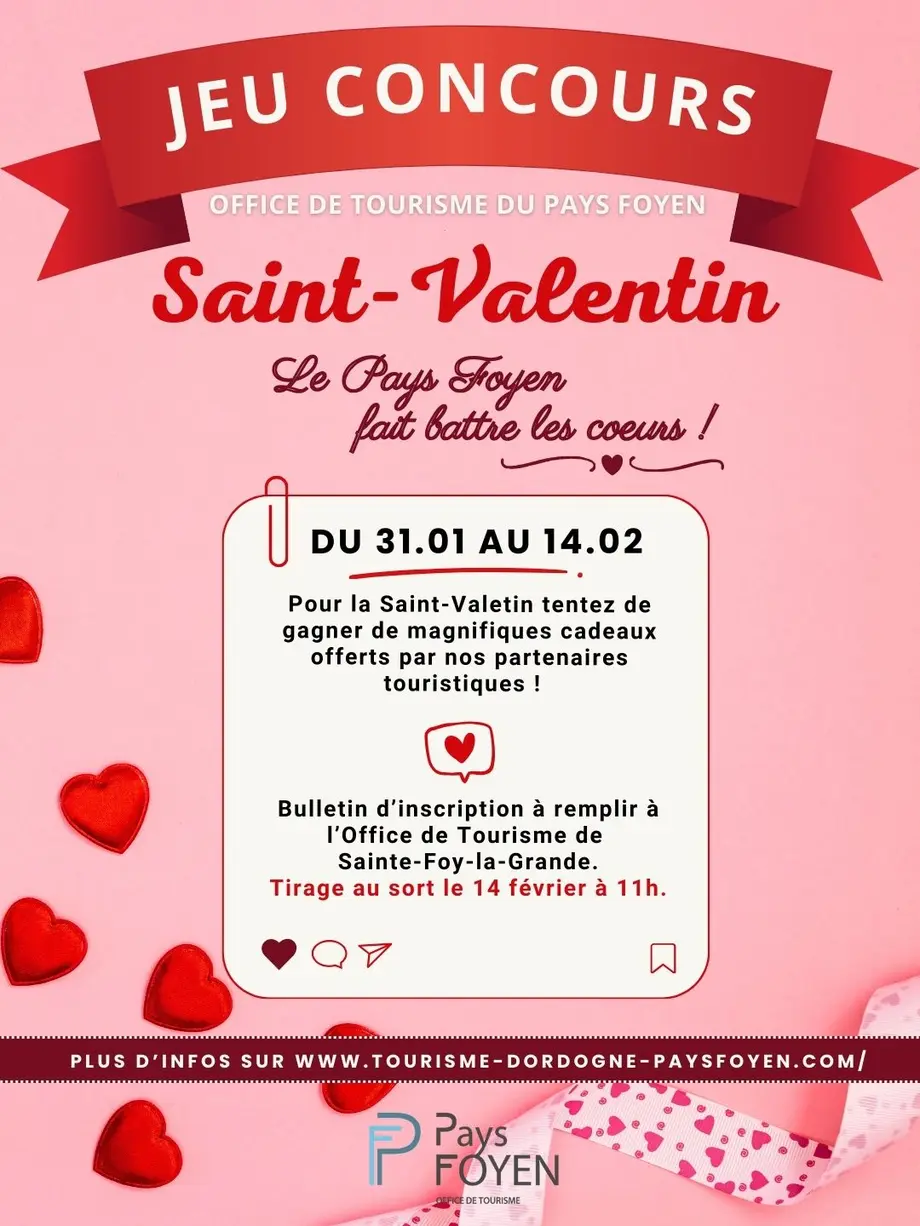 Jeu concours Saint-Valentin par l'Office de Tourisme du Pays Foyen : Le Pays Foyen fait battre les coeurs!