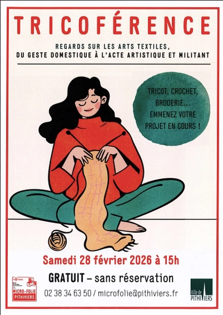 Le samedi 28 février 2026 à 15 h, la Micro-Folie de Pithiviers invite le public à explorer l’univers des fils et des aiguilles lors de sa « Tricoférence ». Ce rendez-vous culturel pose un regard croisé sur les arts textiles, analysant l’évolution du simple geste domestique vers un véritable acte artistique et militant.