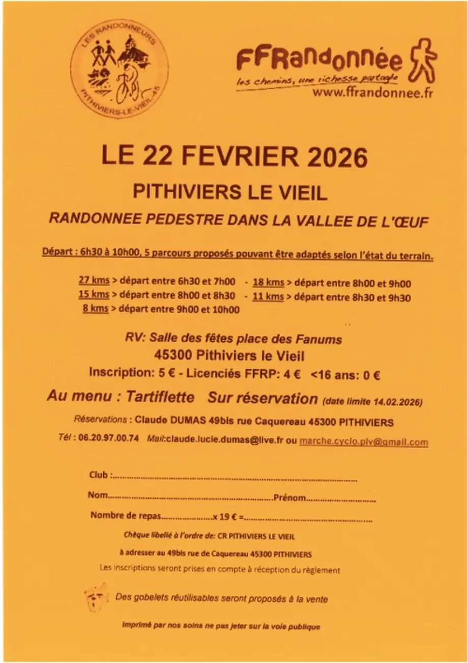Les Randonneurs de Pithiviers-le-Vieil invitent les marcheurs à découvrir la Vallée de l’Œuf le dimanche 22 février 2026.