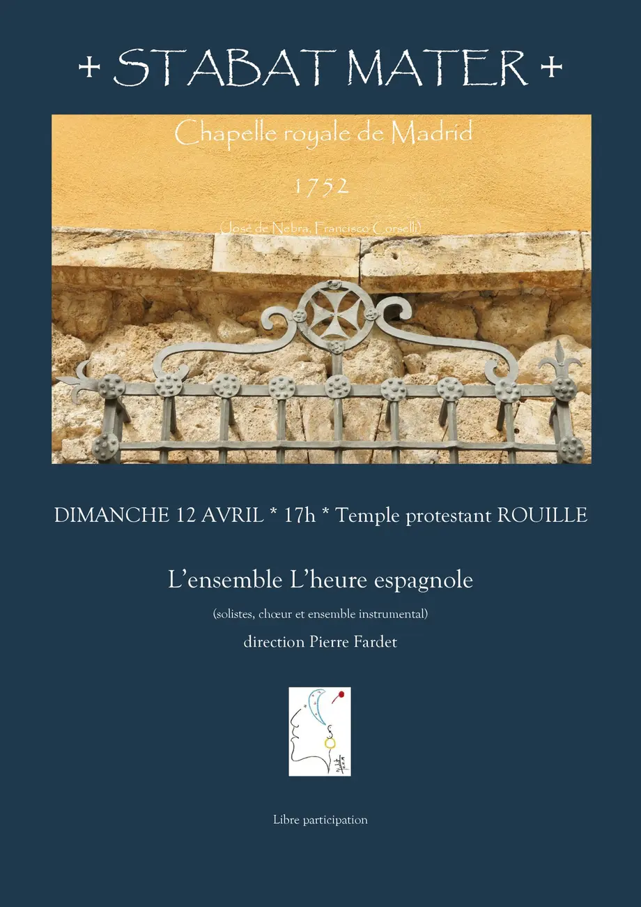 L'ensemble L'heure espagnole (2 traversos, quatuor à cordes, orgue positif, solistes et choeur) met en regard deux Stabat mater écrits en 1752 à la Chapelle royale de Madrid par les deux compositeurs José de Nebra et Francisco Corselli, ponctués des Sept paroles du Christ en croix écrites au début du 17ème siècle.