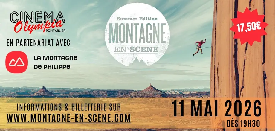 Votre Cinéma Olympia Pontarlier vous propose de découvrir la Summer Edition 2026 du Festival Montagne en Scène le Lundi 11 Mai à 19h30