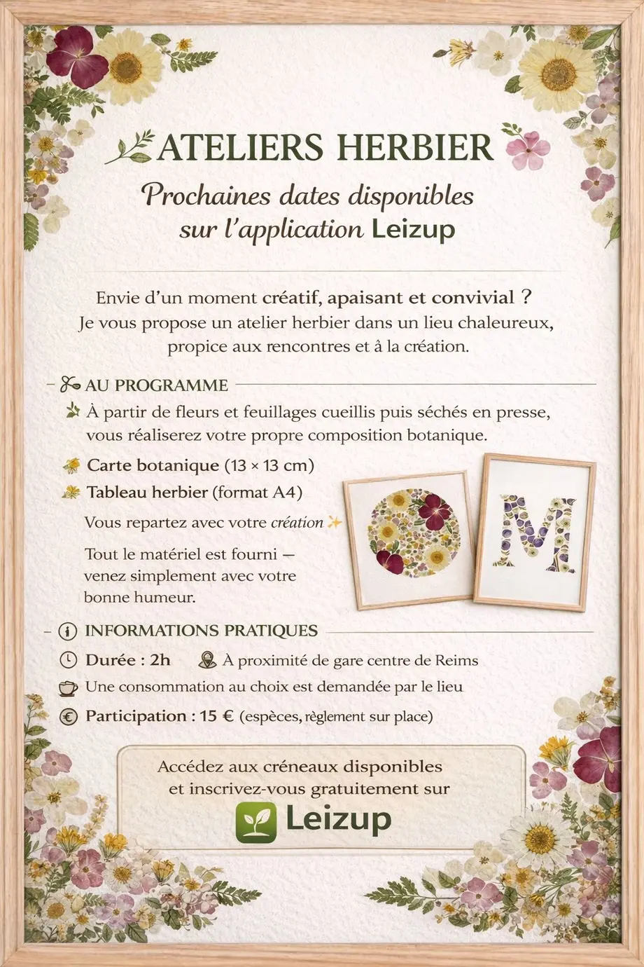 Je vous propose un atelier créatif autour des fleurs et feuilles séchées, pour réaliser votre propre herbier.