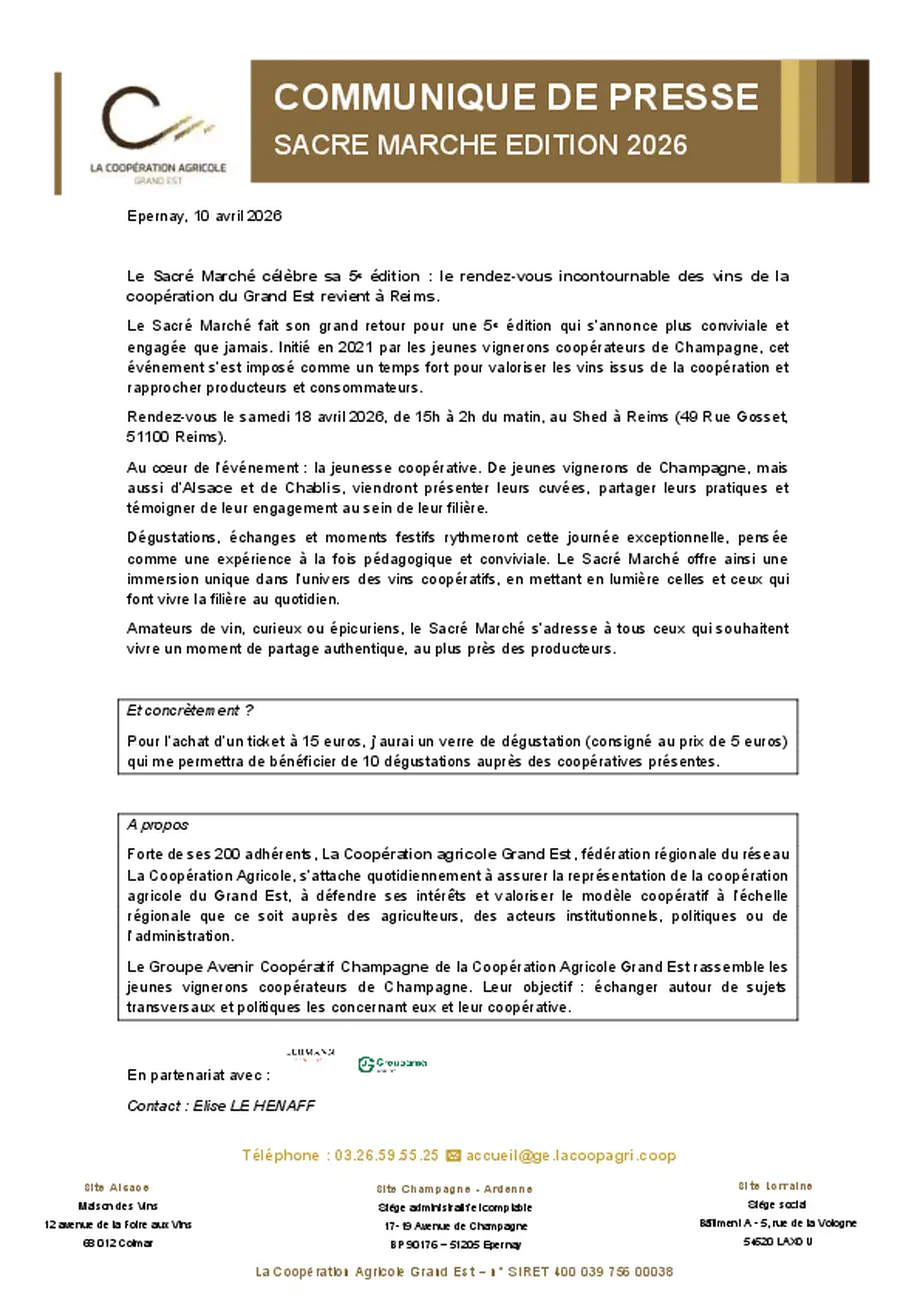 Initié en 2021 par les jeunes vignerons coopérateurs de Champagne, cet événement s’est imposé comme un temps fort pour valoriser les vins issus de la coopération et rapprocher producteurs et consommateurs.