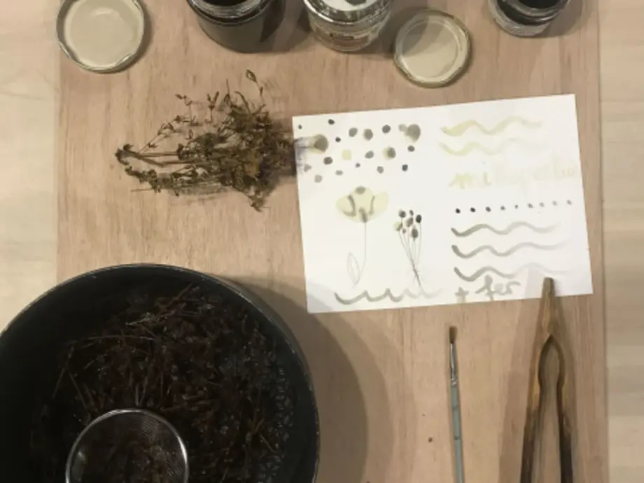 - Fabrication d’encres botaniques et application sur 3 cartes personnalisées.