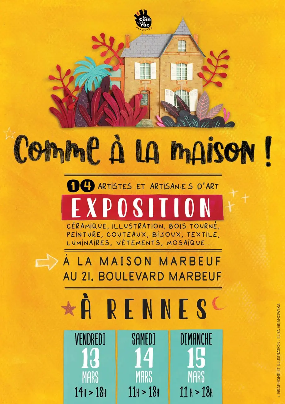 14 artistes et artisan.e.s d’art exposent leur travail à la Maison Marbeuf. Venez les rencontrer dans une ambiance conviviale et chaleureuse, « comme à la maison » dans ce tiers-lieu rennais.