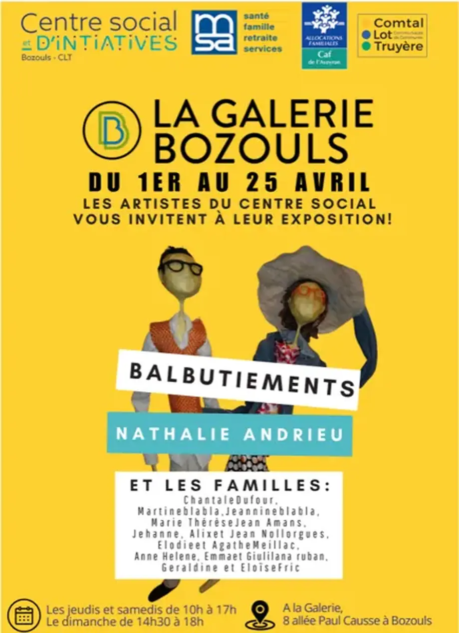 Du 1er au 25 avril 2026, la Galerie de Bozouls accueille l’exposition « BALBUTIEMENTS » de Nathalie ANDRIEU, en collaboration avec l’atelier Créatifs en Famille du Centre social Bozouls-Comtal.