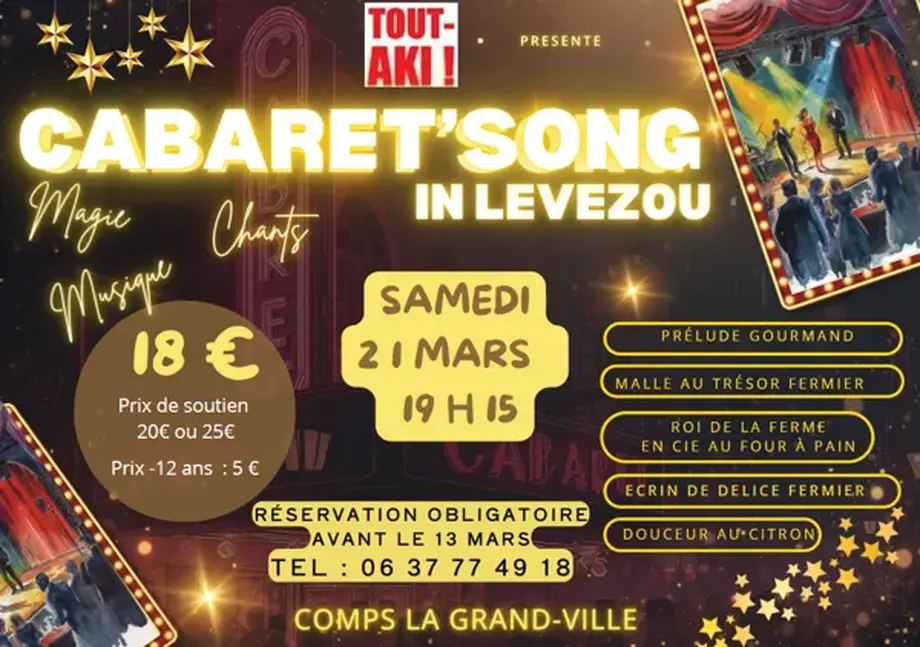 Soirée sur réservation obligatoire avant le 13/03 au 06 37 77 49 18.