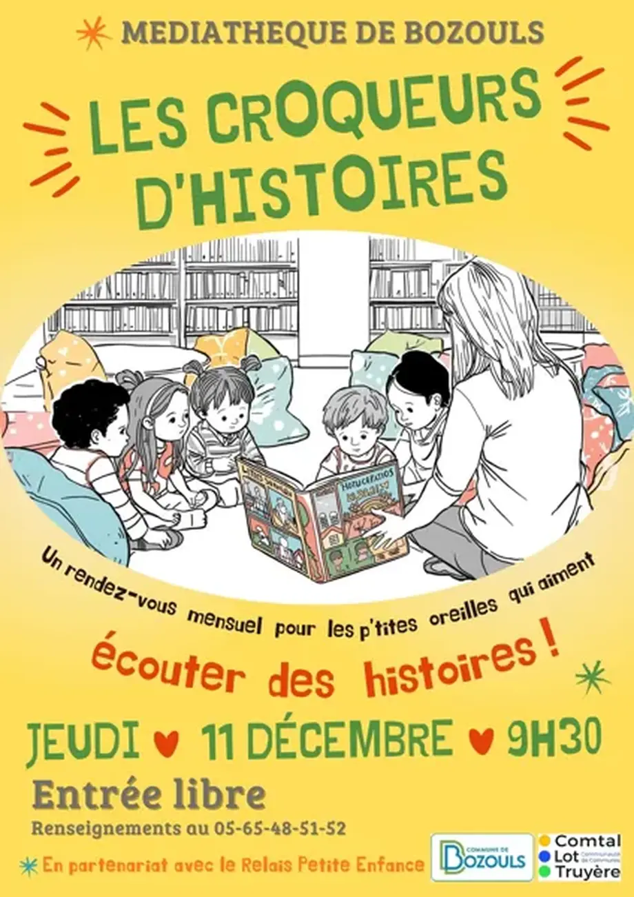 Le Relais Petite Enfance et la médiathèque de Bozouls invitent les p’tites oreilles qui aiment écouter des histoires, en compagnie de leurs assistants maternels et/ou de leurs parents, à se retrouver une fois par mois à la médiathèque.