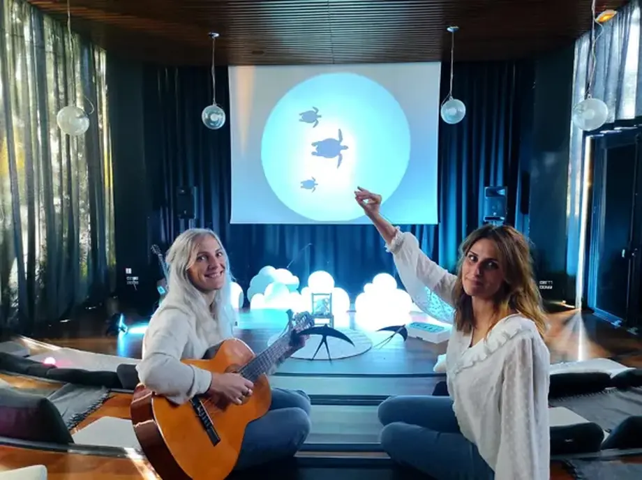 Une sieste musicale douce et enchantée, où, de leurs voix douces, les artistes alternent narration, chanson et théâtre d’ombres. On découvre un univers poétique et hypnotisant.