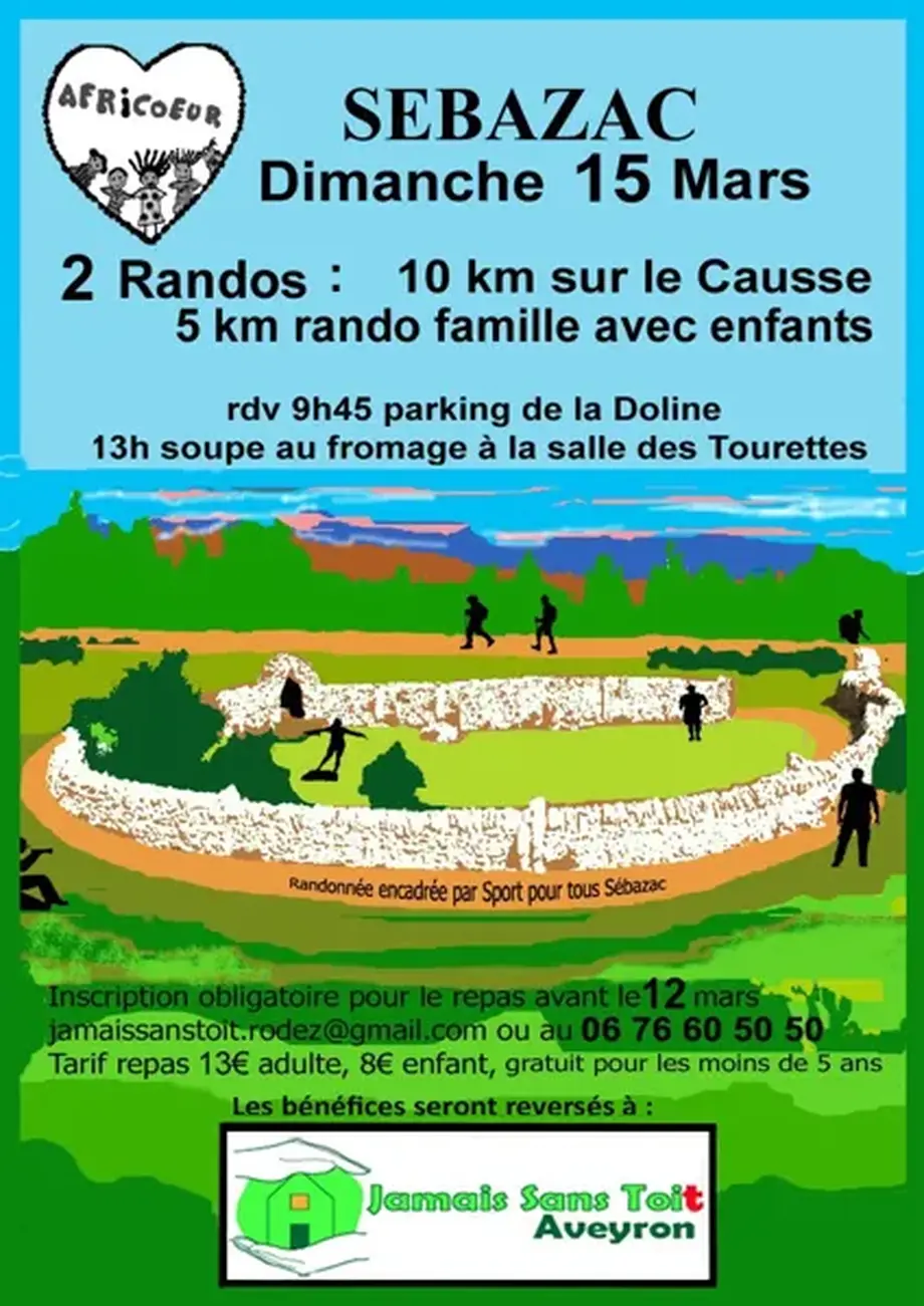 Les bénévoles de Jamais Sans Toit et de l’association Africœur vous invitent le dimanche 15 mars à une randonnée sur le Causse.
