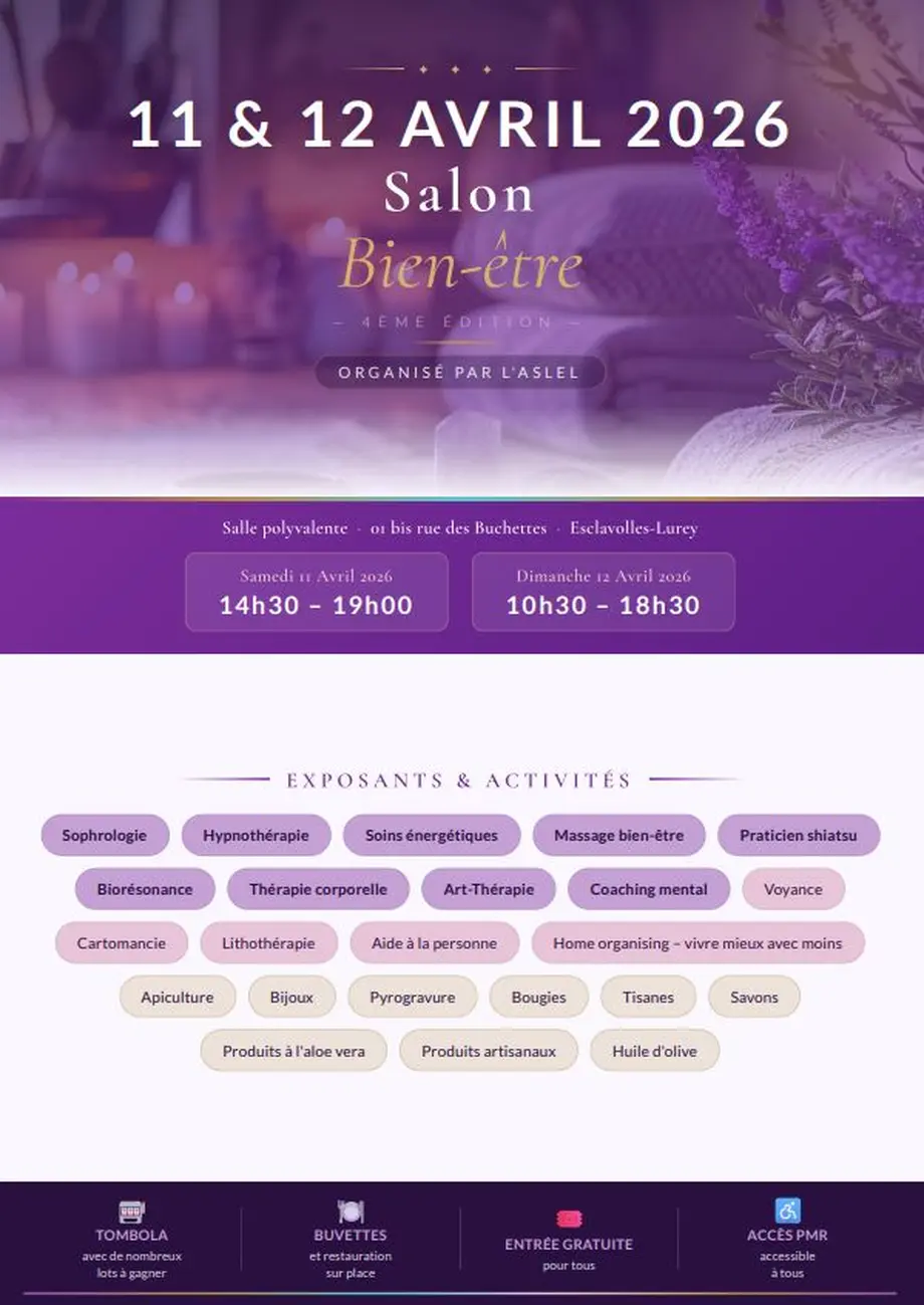 Rejoignez nous pour un week-end dédié au bien-être, à la détente, et à la découverte de produits et services exceptionnels. Nous avons hâte de vous accueillir nombreux pour cette expérience unique !