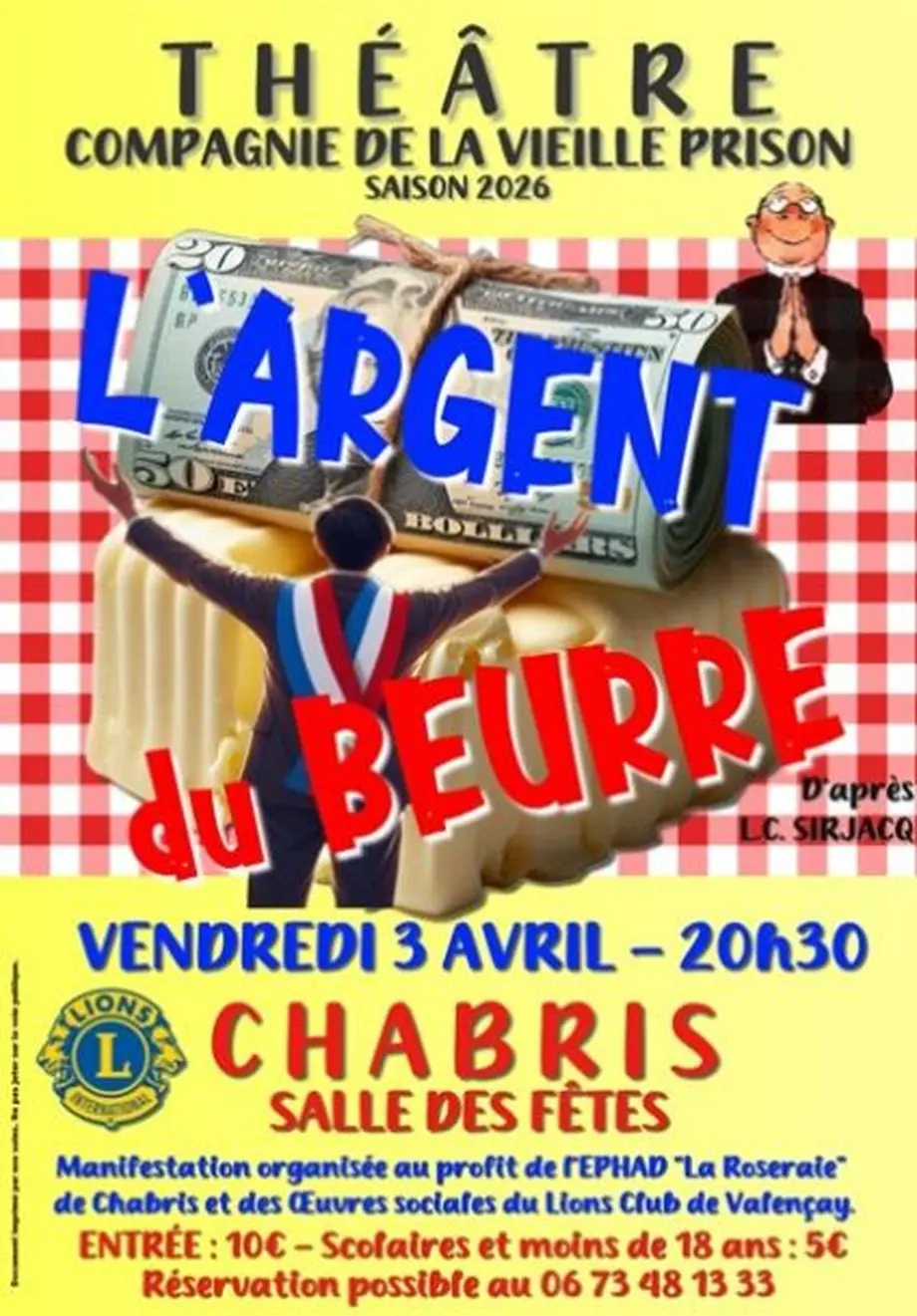 Le Lions Club de Valençay vous propose la comédie L’Argent du Beurre par la Compagnie de la Vieille Prison.