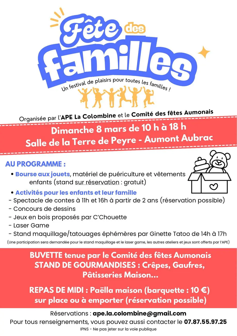 Rejoignez-nous le dimanche 8 mars à partir de 10 h, à la salle de la Terre de Peyre à Aumont-Aubrac, pour une journée amusante :