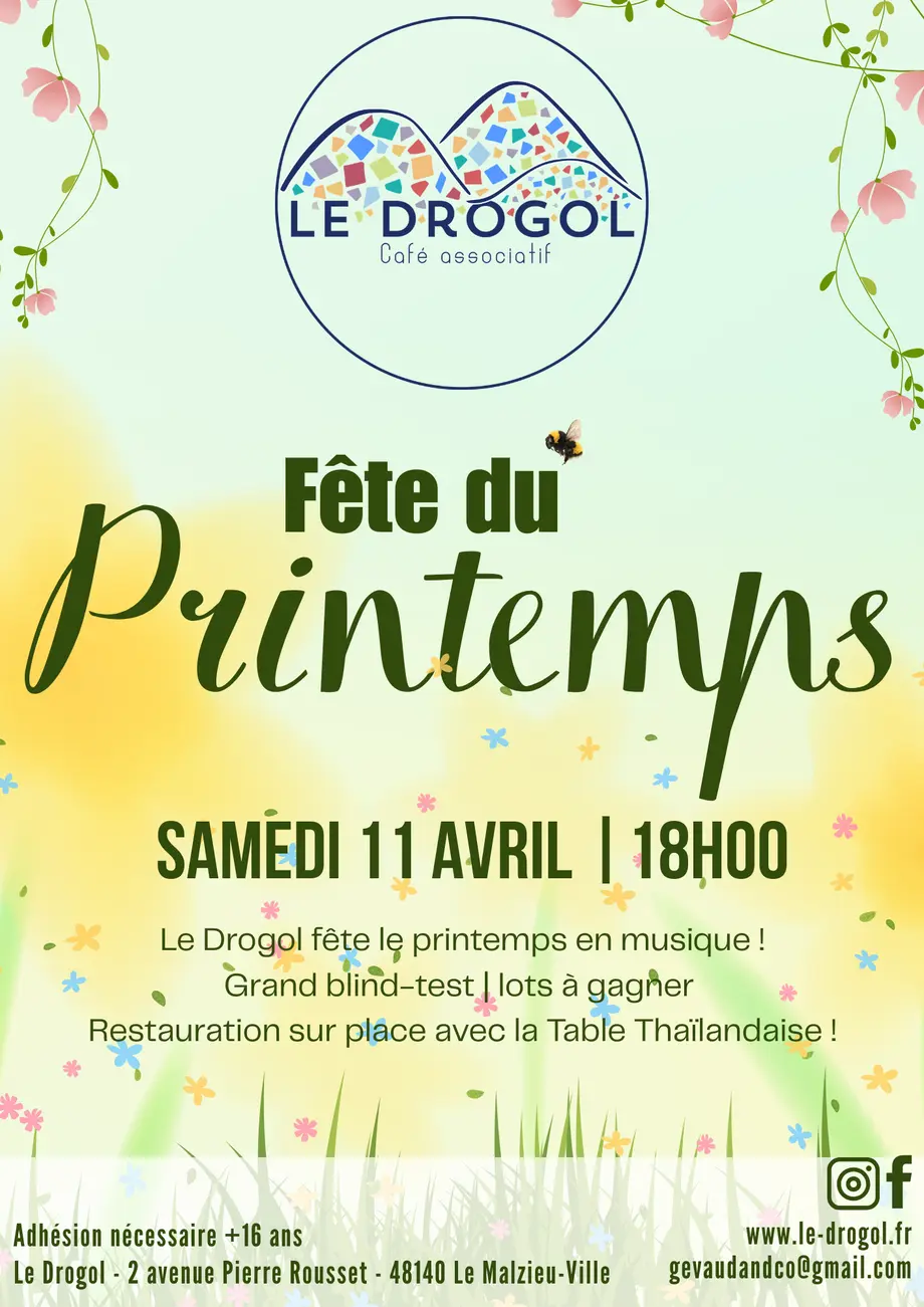Le Drogol, premier café associatif du Malzieu-Ville, vous propose de fêter le printemps en musique ! Au programme : des animations et un food truck sur place.