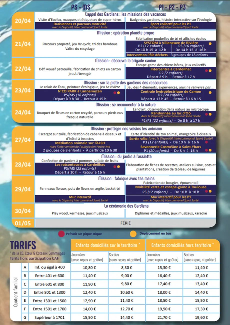 - du Lundi 27 Avril 2026 au Jeudi 30 Avril 2026 de 7h30 à 18h30