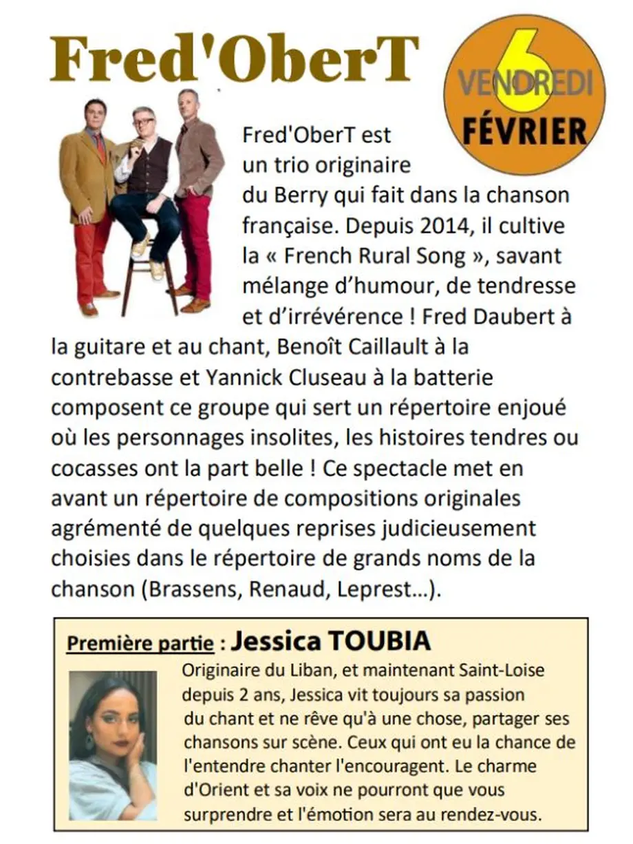 Rendez-vous le 06 février prochain à la salle des fêtes d'Agneaux à 20 h 30 pour le concert de Fred'OberT !