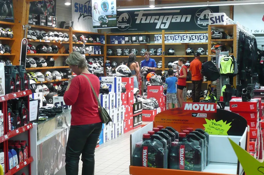 On y trouve des casques de motos de toutes tailles, des vestes, des bottes, des gants, des accessoires mais aussi des pièces mécaniques ou d'entretien pour moto, quad et 50 cc : kit chaîne, huile, chargeurs de batterie, pneus, nettoyants, batteries...