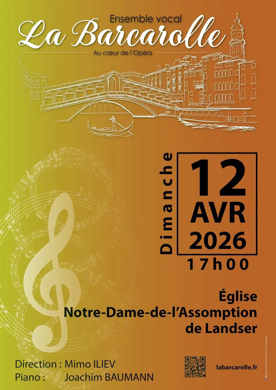 Dans le cadre du jubilé qui consacre, cete année, le 250è anniversaire de la reconstruction de l'église de Landser, l'Ensemble vocal La Barcarolle de Dietwiller, dirigée par Mimo Iliev, donnera un concert " Choeur et Orgue" avec des solistes de renom, Joachim Baumann au piano et à l'orgue, Mehdi Messum à la trompette, Caroline Lafont, soprano et Jean-Luc Kreiter, ténor.