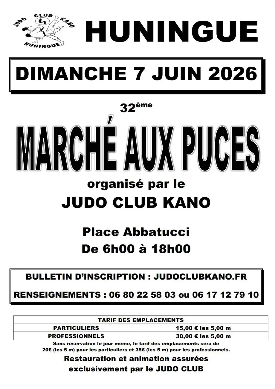 Renseignements et formulaire d'inscription sur le site internet du Judo Club Kano Huningue : https://judoclubkano.fr/marche-aux-puces-2026/