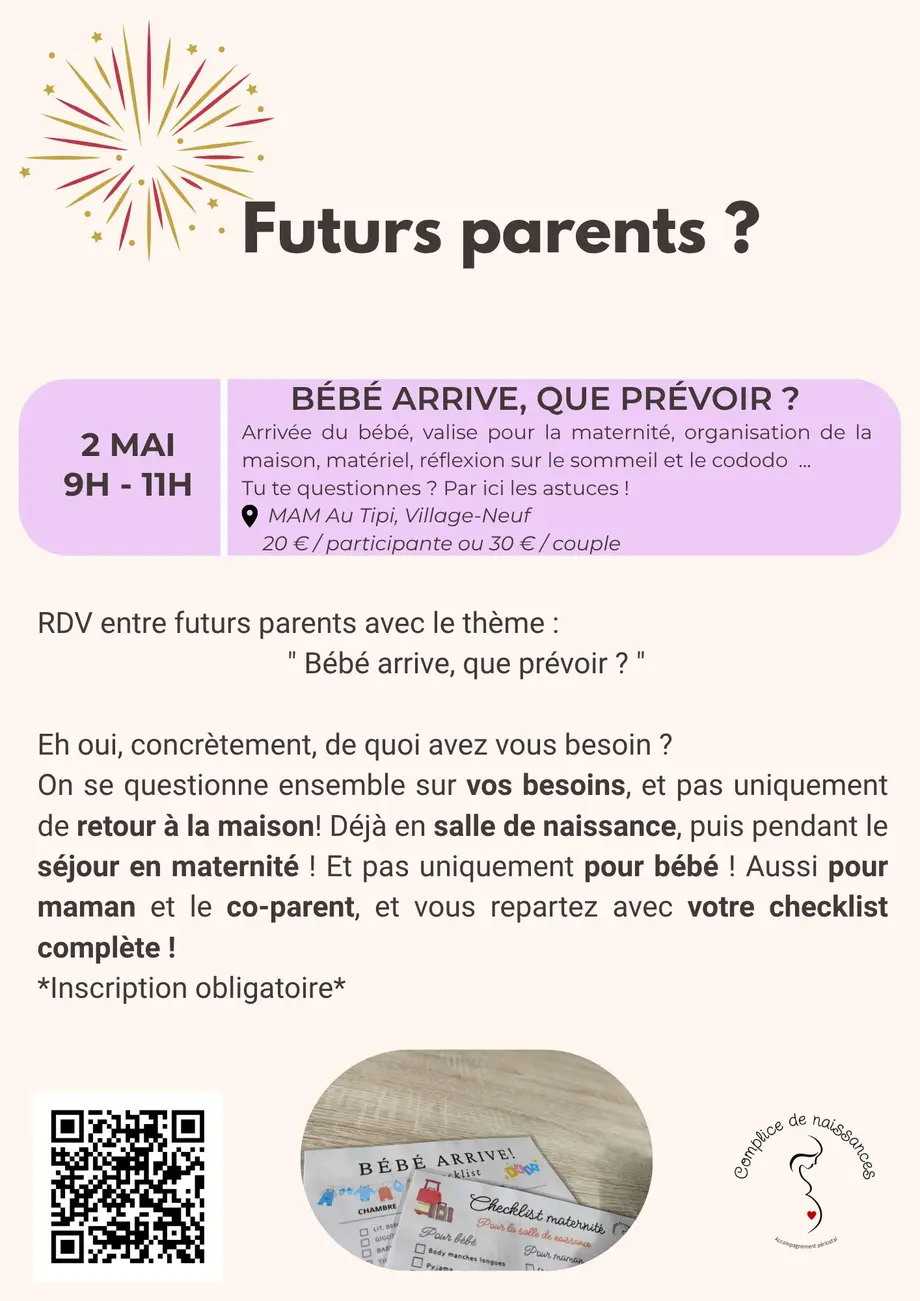 Envie de vous retrouver pour discuter et échanger dans un cadre bienveillant? C'est ce que "Complice de Naissances" pour propose ! Aujourd'hui le thème : "Bébé arrive, que prévoir ?"