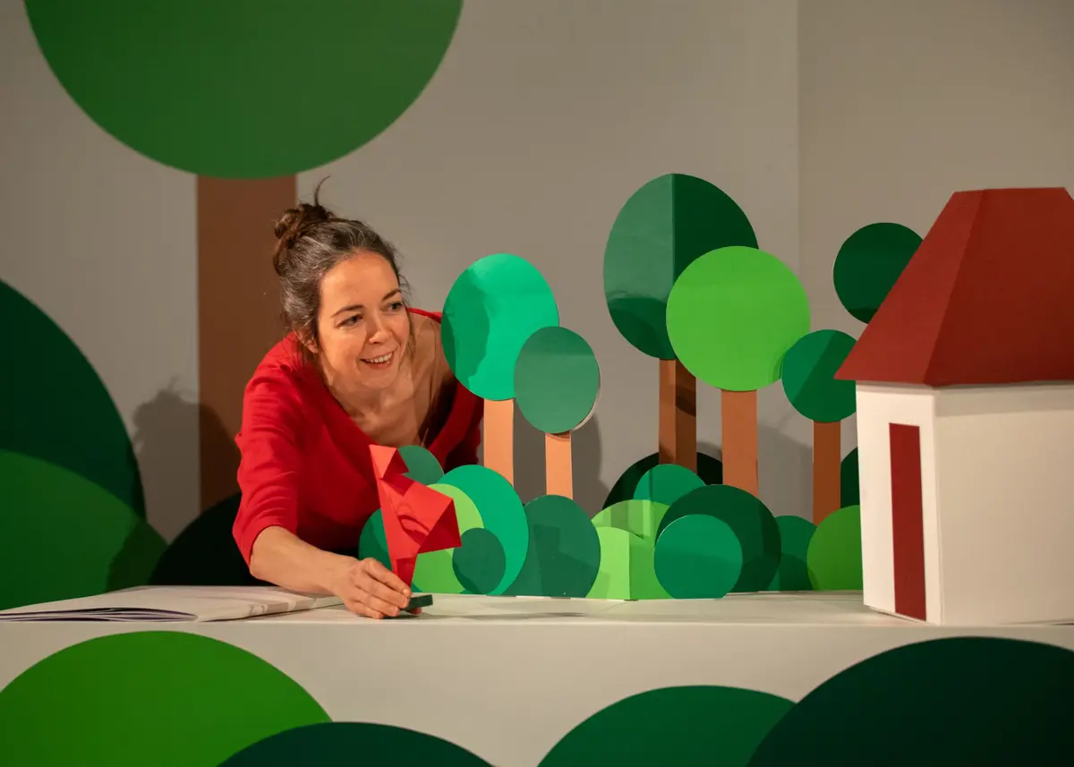Dans un livre pop-up aux échelles multiples, les formes se déploient, les personnages s'échappent de la page et réécrivent le conte pour mieux le renverser. Au-delà de l'immersion graphique, le spectacle interroge la façon de devenir "plus grand.e" après la rencontre avec le loup : apprendre à respirer encore, à vivre plus fort.