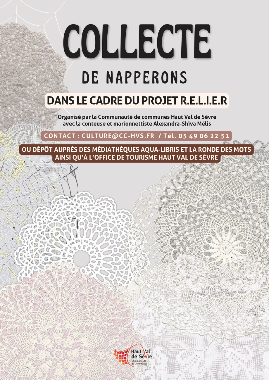 Une collecte est donc lancée : les personnes possédant de vieux napperons en crochet peuvent les déposer au service culturel de la communauté de communes Haut Val de Sèvre.