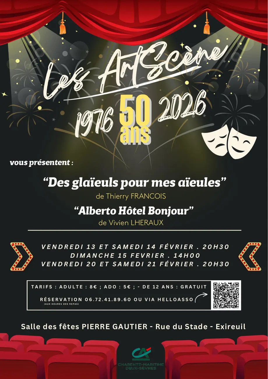 En 2026, la troupe de théâtre amateur d’Exireuil, Les Artscène, célèbre 50 années de passion, de rires et d’émotions partagées avec le public.