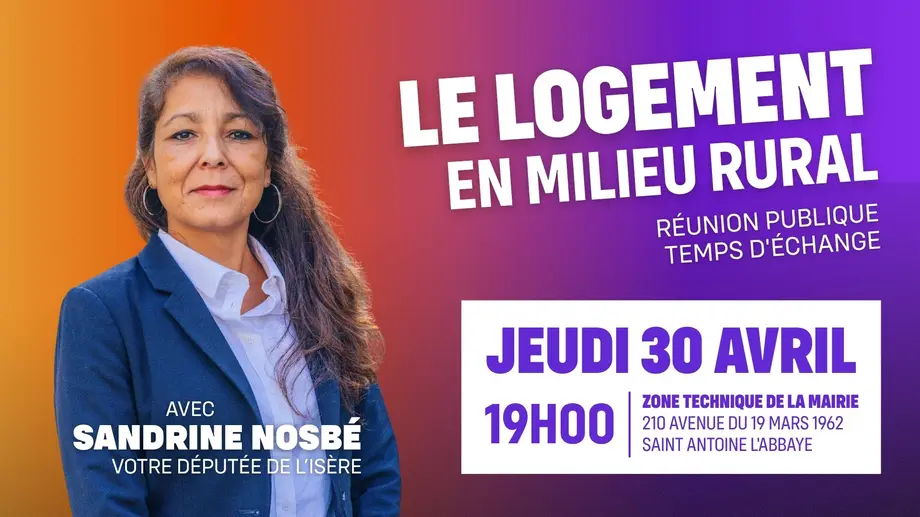 Madame la députée de l’Isère, Sandrine Nosbé, vous invite à une réunion publique pour échanger avec elle et avec son invitée, Magali Audion, de la Maison d’accueil Arche de Saint-Antoine, partager vos expériences autour du logement en milieu rural.