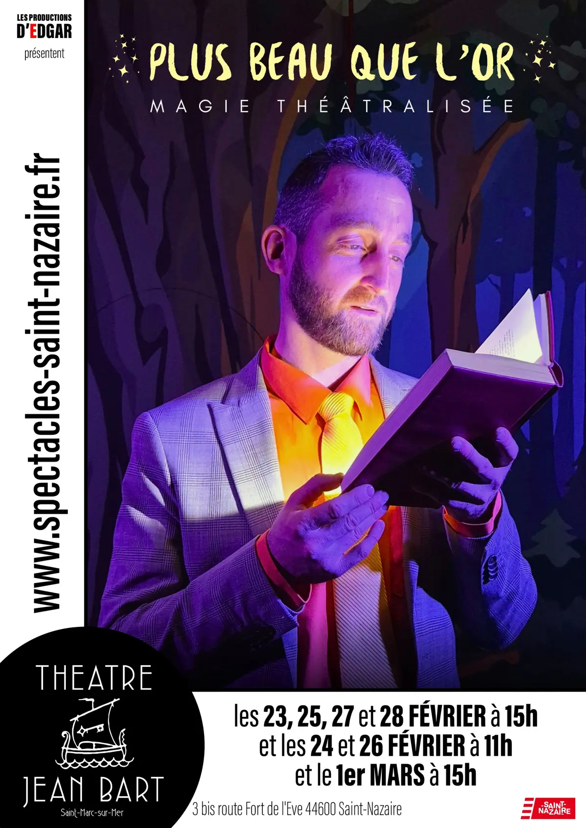 Le Théâtre Jean Bart présente Plus beau que l'or à Saint-Nazaire, un spectacle familial interactif dès 4 ans qui transforme une leçon de morale en aventure magique. Monsieur Pingre, directeur d'entreprise avare, se retrouve propulsé dans un conte enchanteur où il redécouvre les vraies valeurs. Un spectacle retenu pour son message positif et sa capacité à captiver toute la famille.