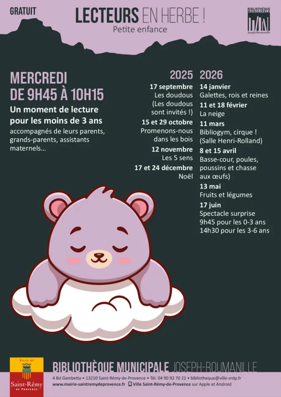 Atelier adulte : Jeux d'écritureDu 06/12/2025 au 20/06/2026 Saint-Rémy-de-ProvenceVous aimez la littérature et l'écriture ? Participez aux ateliers jeux d'écriture organisés tous les mois par la bibliothèque municipale Joseph Roumanille à […]