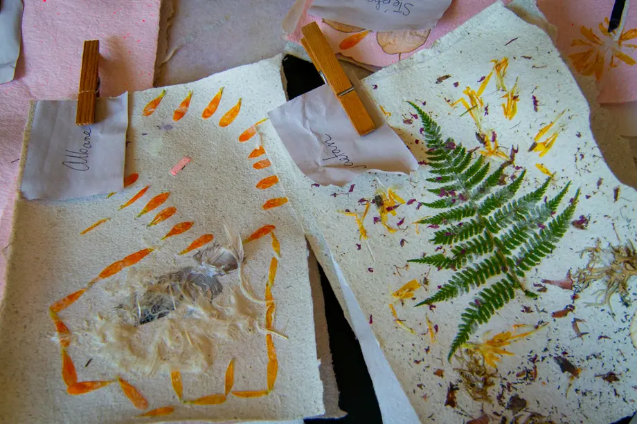 Fabrication de papier artisanal avec différentes pâtes végétales selon des techniques ancestrales et découverte de procédés créatifs.