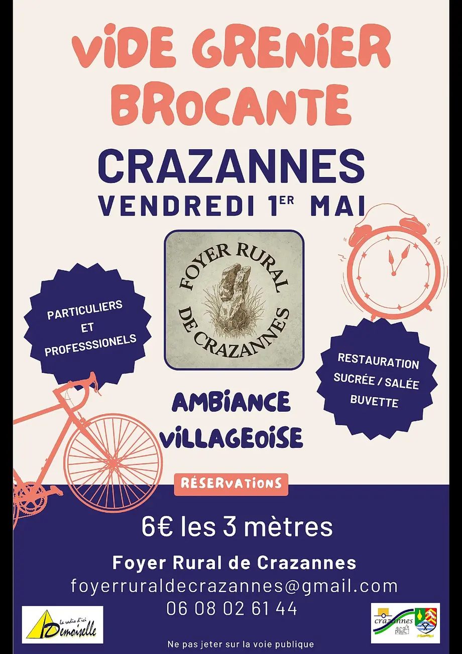 Vide-grenier/Brocante organisée par le Foyer Rural de Crazannes