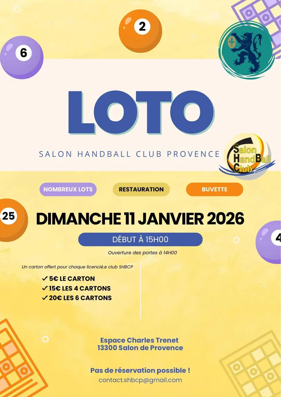 Loto du Salon Bel-Air FootLe 10/01/2026 Salon-de-ProvenceOn se donne rendez-vous le samedi 10 janvier 2026 à l’Espace Charles Trenet, à Salon-de-Provence.