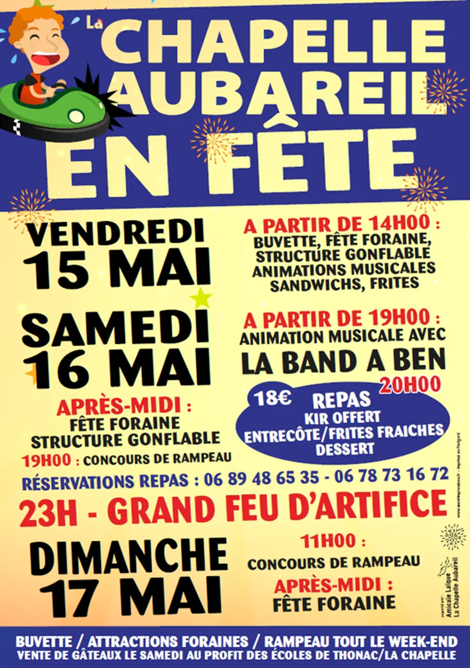 - Buvette, fête foraine, structure gonflable, animations musicales, sandwichs, frites