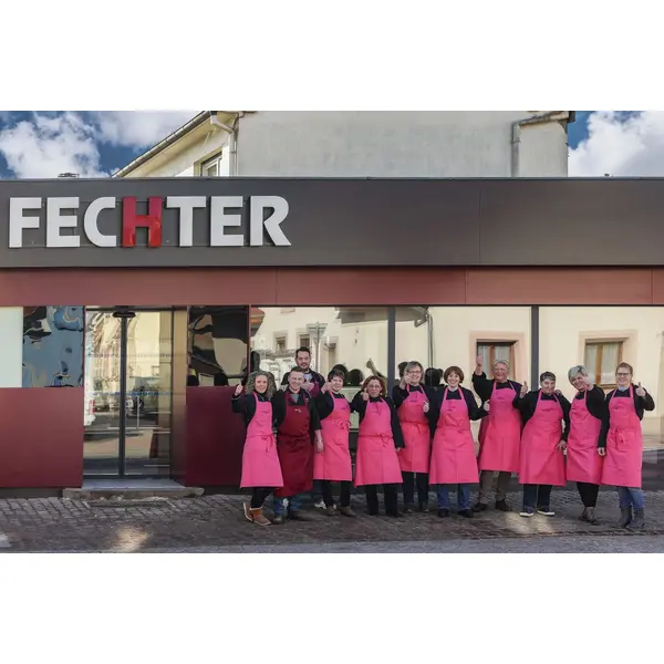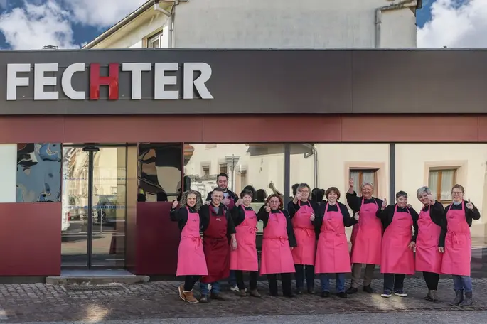 5 générations se sont transmis le flambeau en prenant soin de conserver l’héritage familial et de le faire évoluer avec son temps. Au fil des ans, la boucherie a vécu de grands virages. En 1980, elle s’affranchit de la GMS pour affirmer son indépendance et diversifie son offre avec des produits inédits pour l’époque, tels que des paupiettes farcies, des cordons bleus, des viandes marinées… Commence ensuite une multiplication des points de vente : 1991 à Weitbruch, 1994 à Phalsbourg, 2007 à Pfaffenhoffen, 2010 à Reichshoffen et 2016 à Monswiller. En 2000, Fechter crée son laboratoire de 1000m2 où viandes et charcuteries sont découpées, transformées et valorisées pour la vente en magasin. En 2010, pour faire face à une recrudescence de la concurrence sur le secteur, Thierry et Hélène ont l’idée de lancer une activité de vente itinérante qui représente aujourd’hui 20% du CA. 2 camions parcourent 8 marchés chaque semaine : à Strasbourg, Illkirch, Haguenau, Oberhausbergen, Drusenheim, Reichshoffen, Mertzwiller, Herrlisheim.
