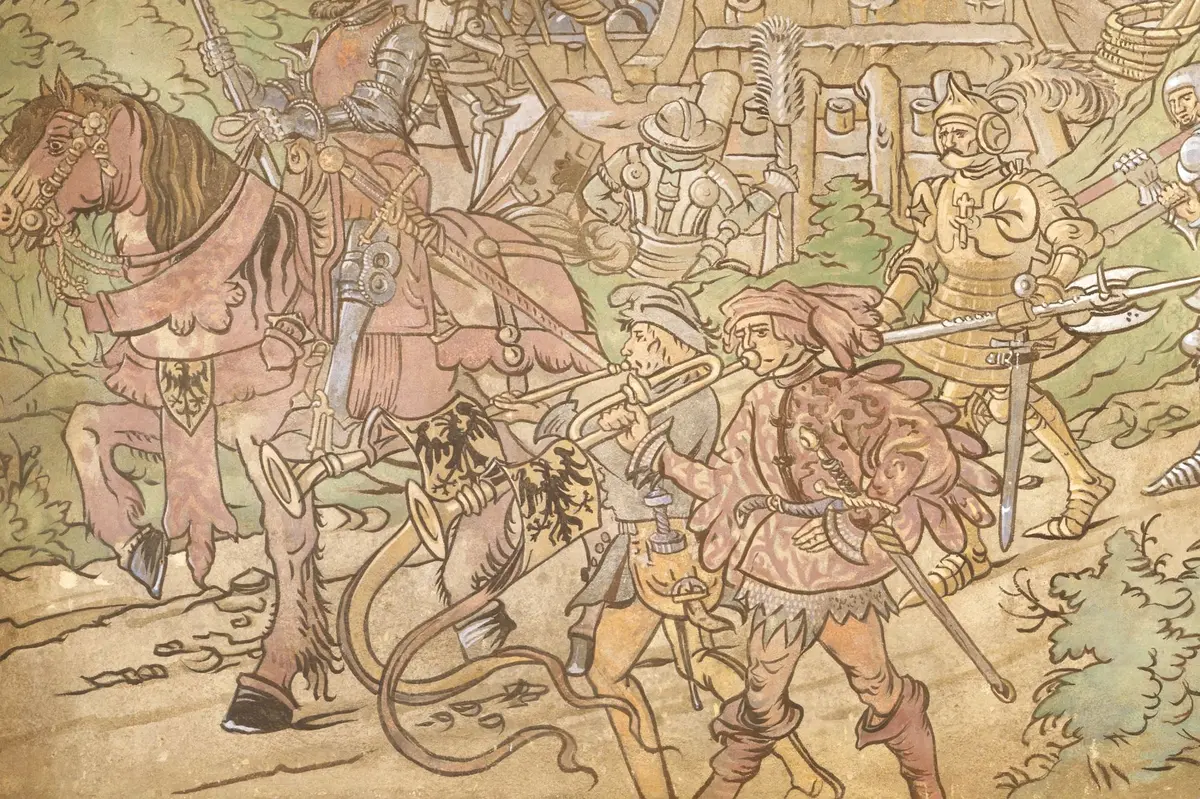 Le Haut-Koenigsbourg n’a pas seulement résonné du fracas des armes. Des instruments de musique y ont également trouvé leur place, apportant une touche de poésie à l’univers martial du château. Inventaires anciens et vestiges archéologiques en témoignent, tandis que d’autres instruments se sont glissés dans les décors du monument lors de sa restauration au début du siècle dernier.