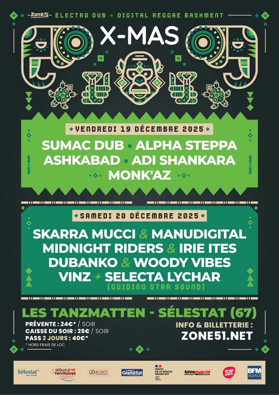 Zone51 pousse les basses, et t’invite à fêter Noël façon electro dub et reggae digital: deux nuits, deux ambiances, une seule mission → te faire danser jusqu’au bout de l’hiver !