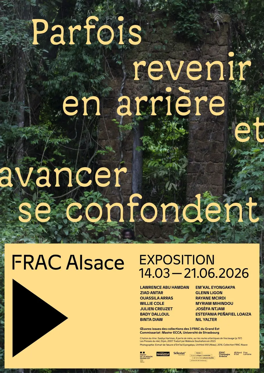 Fidèle à ses engagements en faveur de la formation, de la recherche et de l’expérimentation curatoriale, le FRAC Alsace a donné carte blanche aux étudiant·es du master “Écritures critiques et curatoriales de l’art et des cultures visuelles” (ECCA) de l’Université de Strasbourg pour concevoir une exposition à partir d’une sélection d’œuvres issues des collections des trois Fonds Régionaux d’Art Contemporain du Grand Est — Alsace, Champagne-Ardenne et Lorraine.