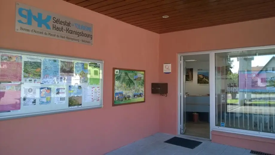 Le bureau d’accueil du Massif du Haut-Koenigsbourg est idéalement situé en bordure de la route de Sélestat, à proximité du paisible jardin médiéval de Kintzheim. Bénéficiant d’un cadre champêtre très agréable, son porche propose de l’ombre aux promeneurs et aux cyclistes ainsi qu’une table de pique-nique à ses abords.