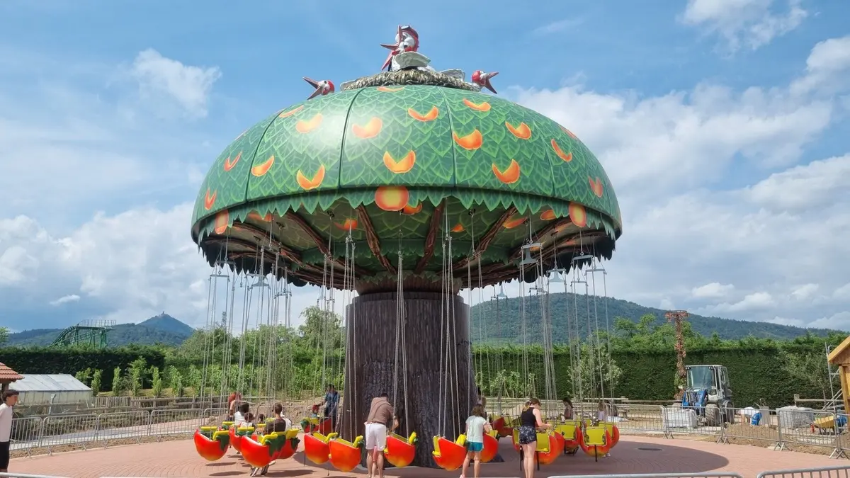 Pensée comme une ode aux vergers d’Alsace, Le Pommier, cette attraction signée par le constructeur allemand Zierer mêle technologie et poésie. Autour de ce pommier géant, 40 nacelles en forme de pomme virevoltent dans les airs, offrant une vue à couper le souffle sur le parc.